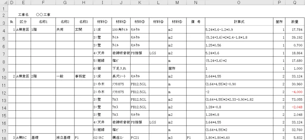 これらは積算の基本を成すもので、正確な見積もりを作成するためには、ソフトがこれらの計算を迅速かつ正確に行えることが求められます。また、現場ごとの詳細な計算を行うために、見積もりの項目ごとに柔軟に設定が可能であることも重要です。